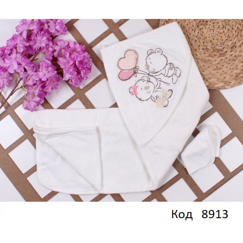 Tr Рушник куточок+рукавичка махра Babyline 9-583 "Ведмедики" 1 шт